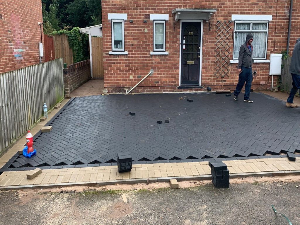 We laid the driveway in a herringbone pattern using Charcoal paving blocks and we gave the driveway a contrasting Natural Grey border.