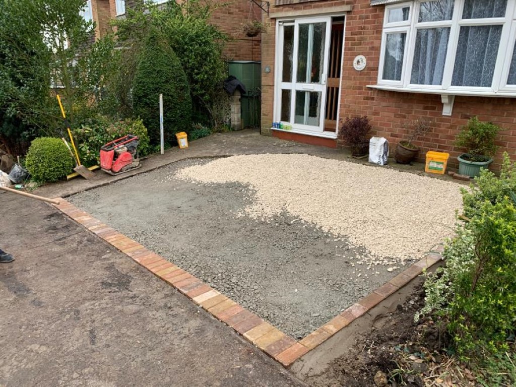This gravel driveway project was completed by Cherwell Drives and Patios in Bishop’s Itchington within a day.