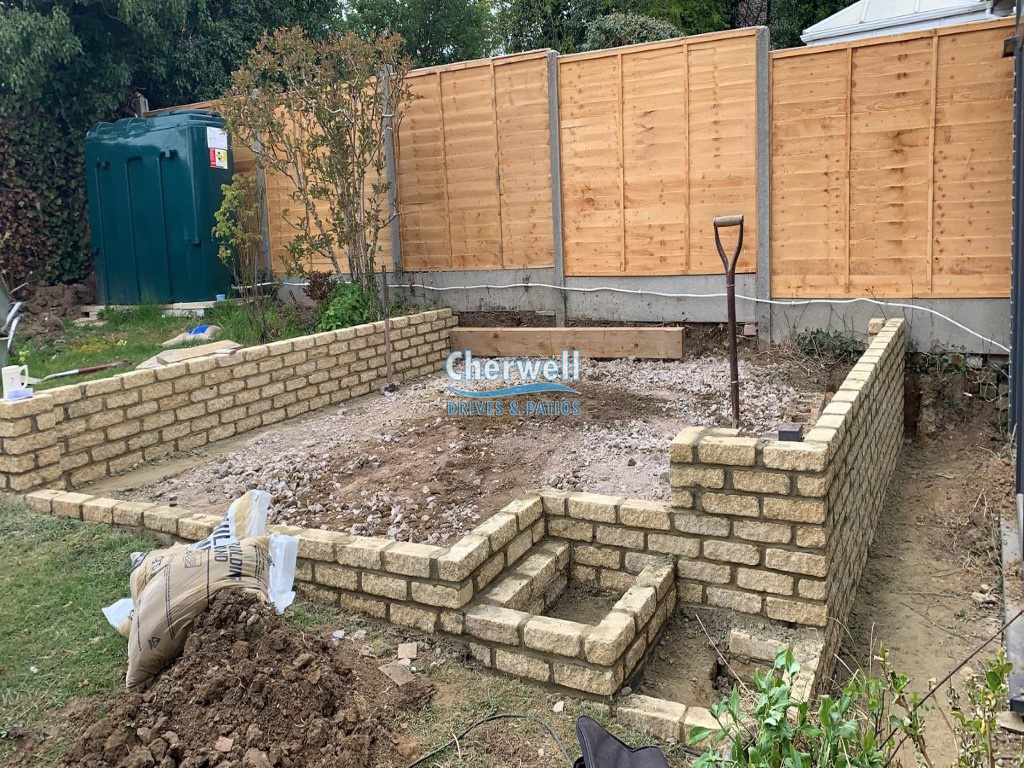 Raised Patio with Retaining Brick Walls in Mollington