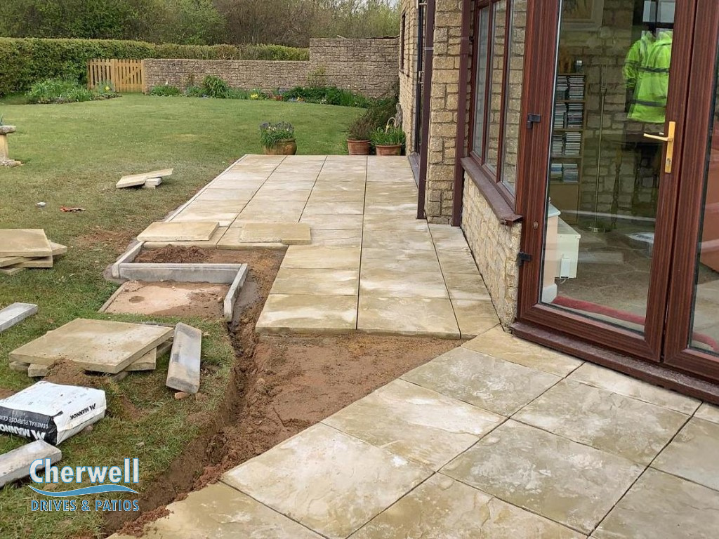 Here are some during and after photos of this patio installation completed by Cherwell Drives and Patio in Aynho.