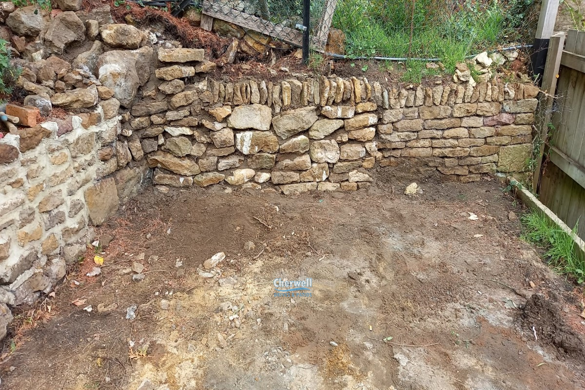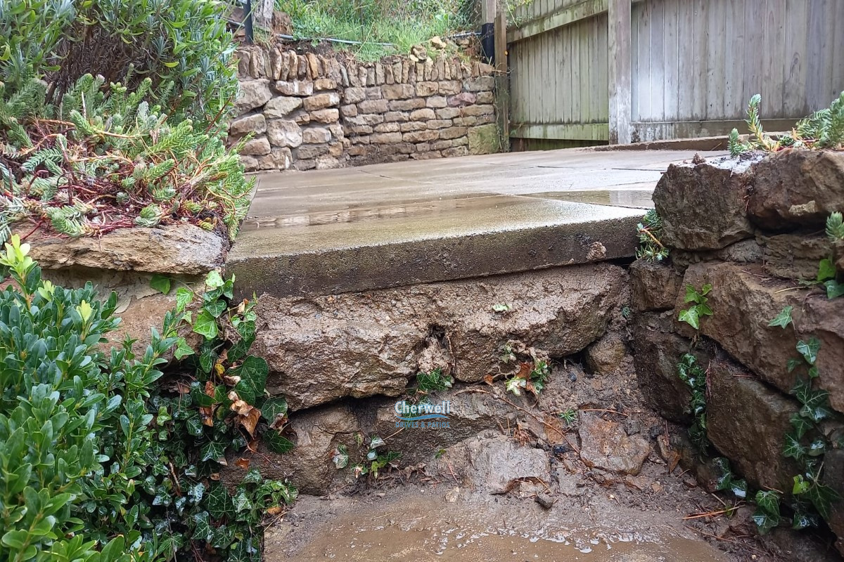 In this project, we lifted the existing slabs and levelled the area underneath. Then we re-laid the patio correctly on a solid foundation. We also repaired a section of the retaining wall, which was falling apart.