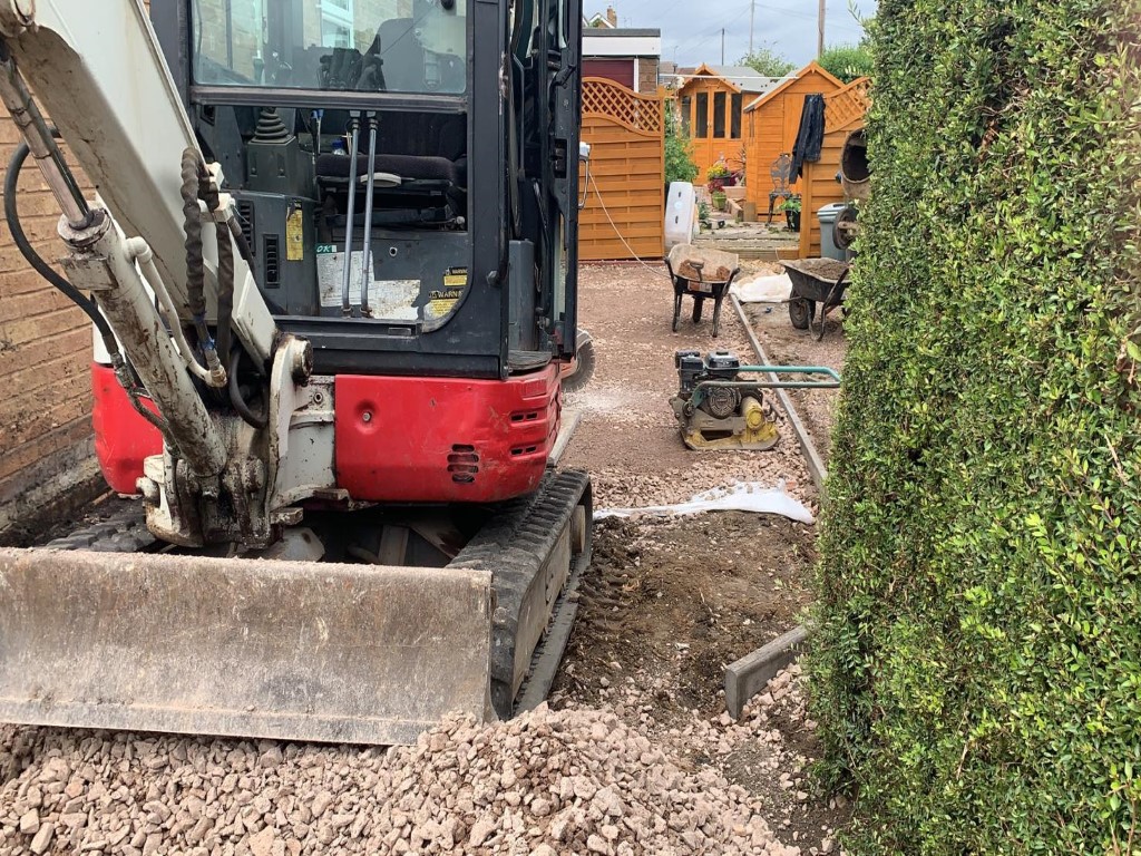 We started by removing the original driveway. Then we installed new hardcore base with a heavy duty membrane underneath.