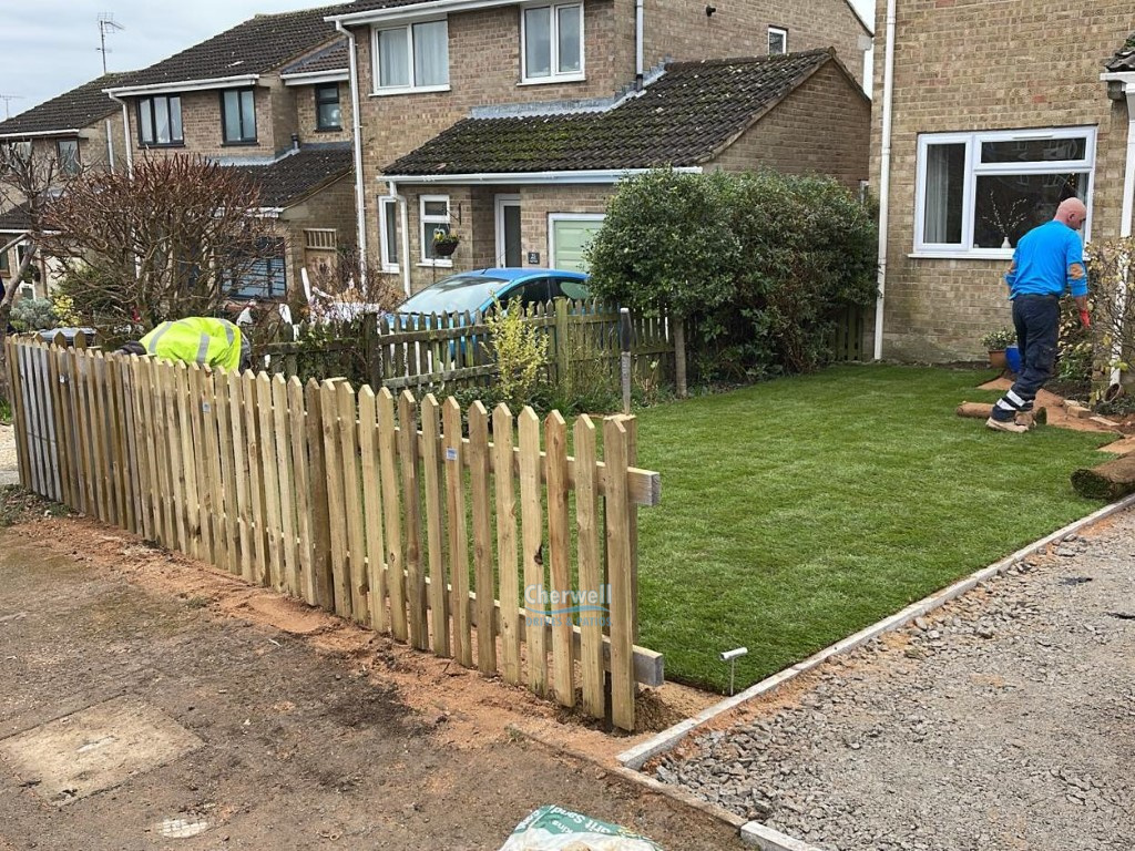 Our team at Cherwell Drives and Patios has recently completed this beautiful driveway transformation, featuring a tarmac top finish with a new lawn on the left-hands side and a wooden picket fence at the front.